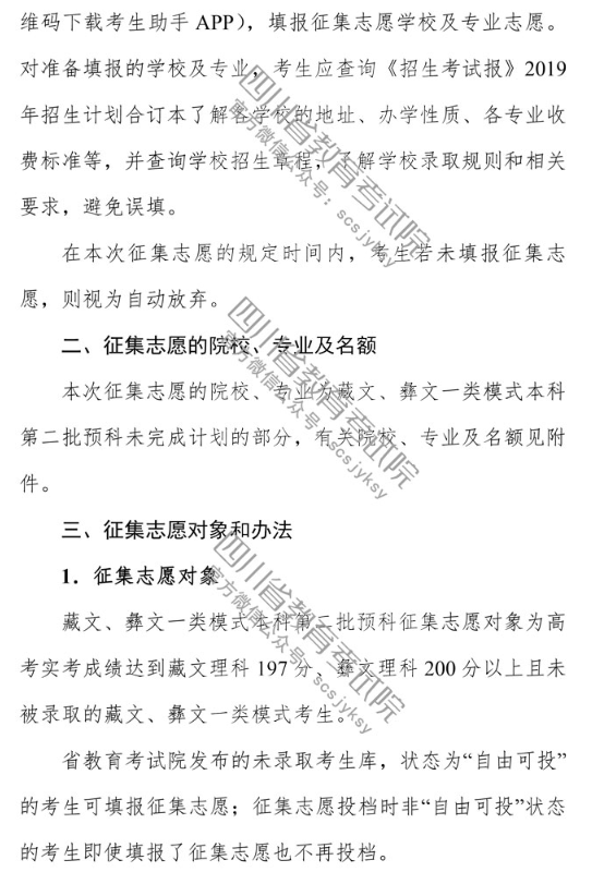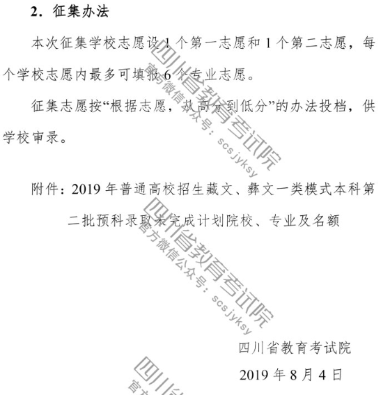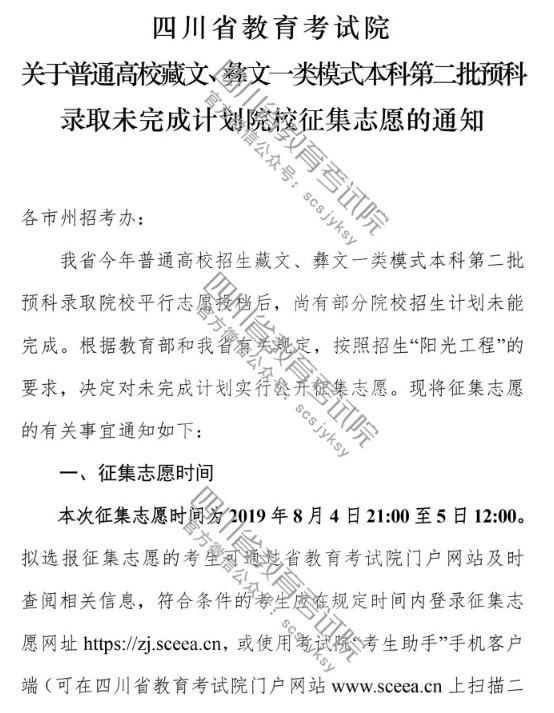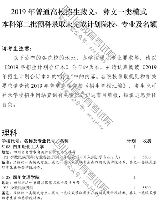 四川:关于普通高校藏文、彝文一类模式本科第二批预科录取未完成计划院校征集志愿的通知