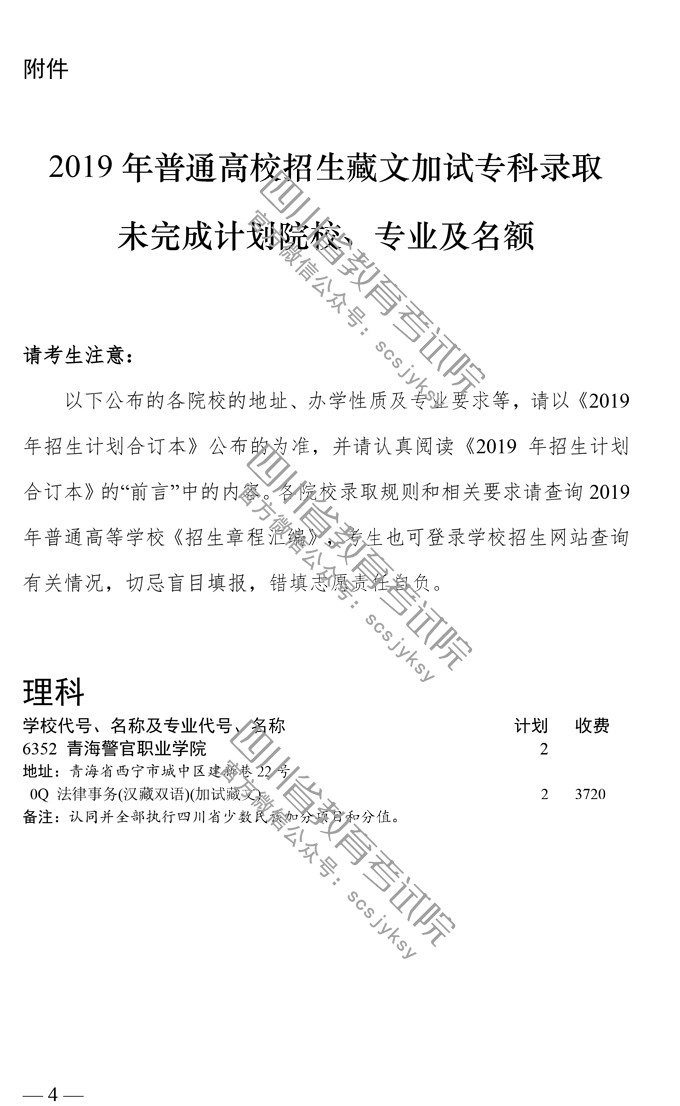 四川:关于普通高校招收藏文加试考生专科录取未完成计划院校征集志愿的通知
