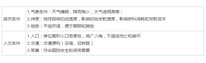 6.卫星发射基地选址的区位条件: