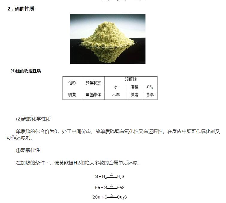 高中化学必修一价态多变元素的单质硫知识点虽然考前刷历年真题很重要,但是在刷题之前一定要扎实基础。化学知识点又繁多,所以一定要梳理清思路。小编整理了高考考前复习,高中化学必修一价态多变元素的单质硫知识点如下。