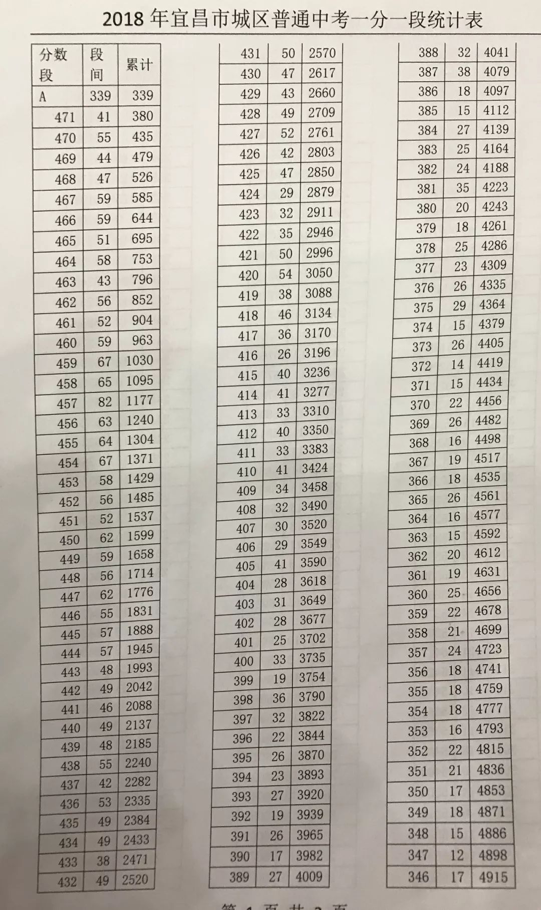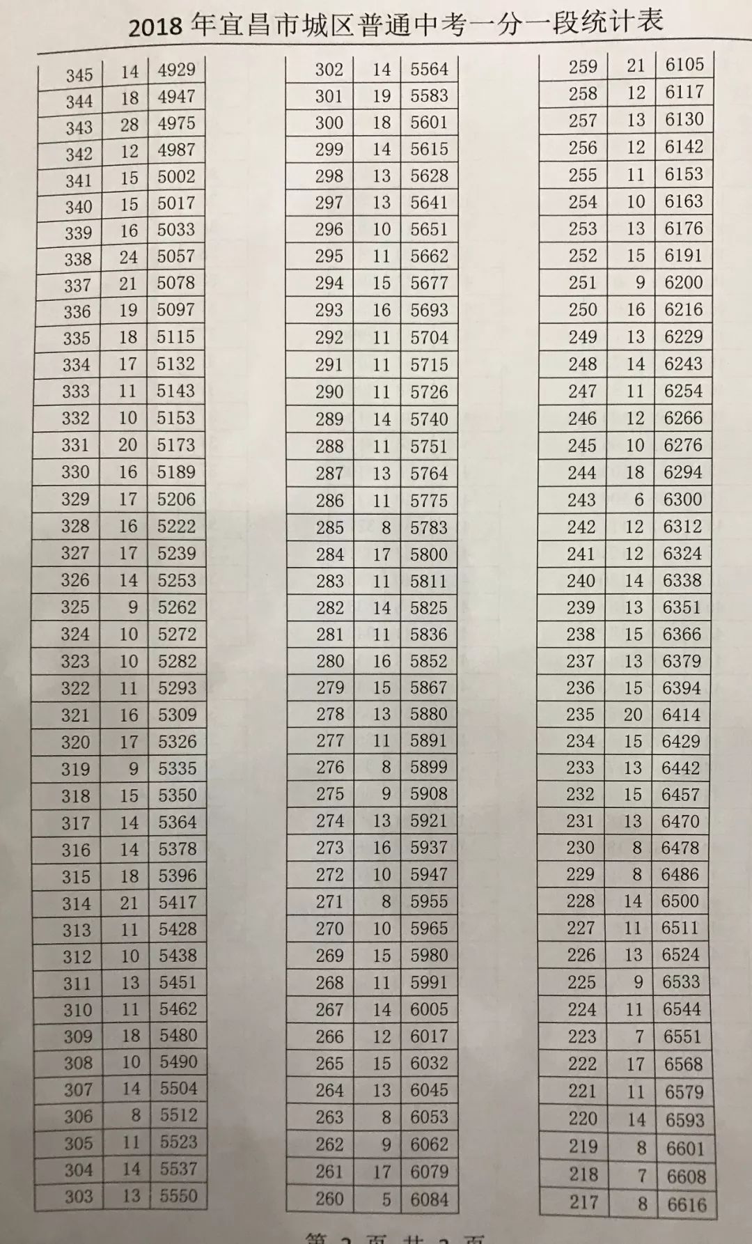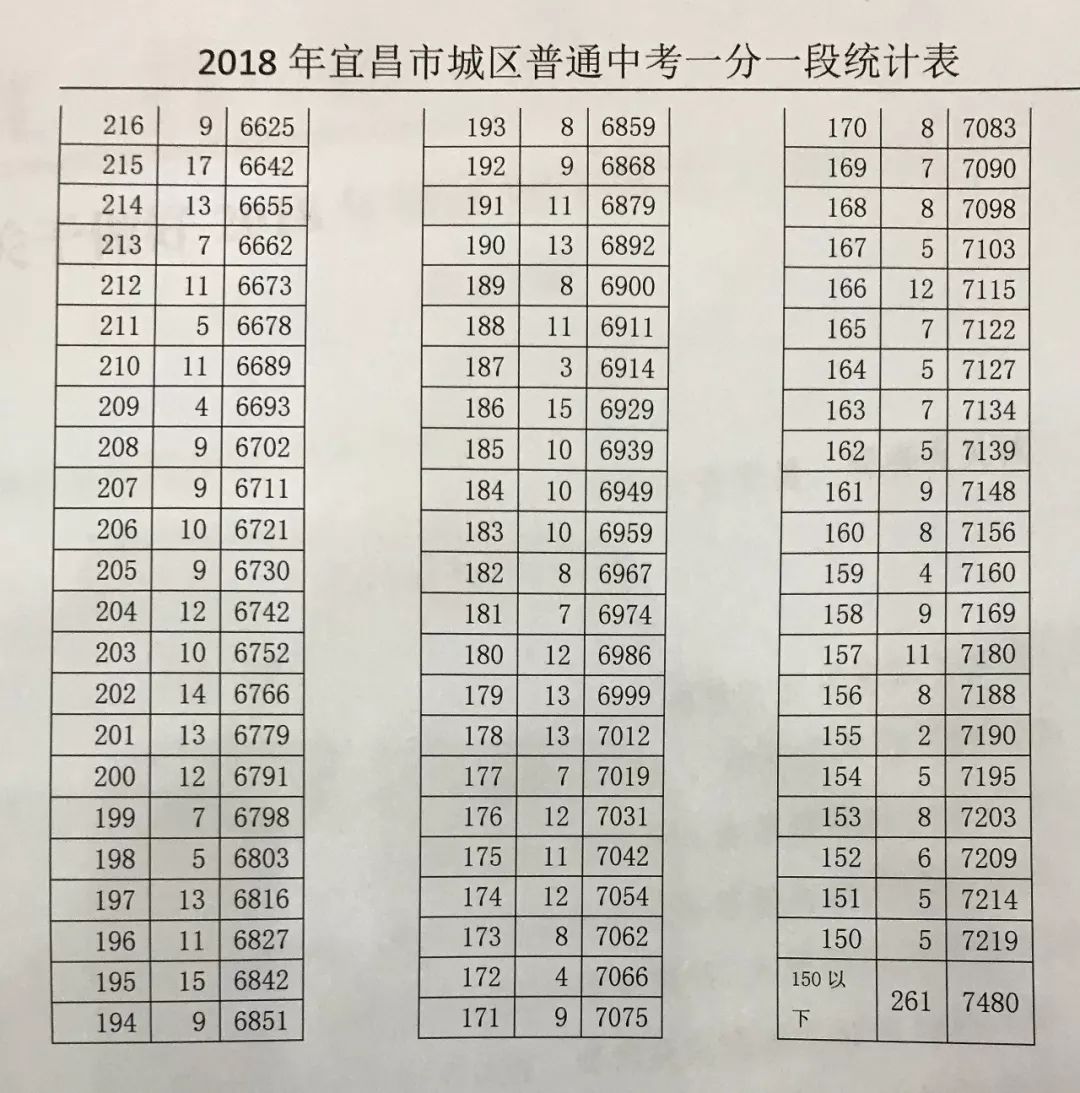 2018年宜昌市城区普通中考一分一段表