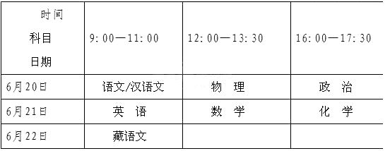 2017年西藏拉萨中考考试时间及科目安排公布
