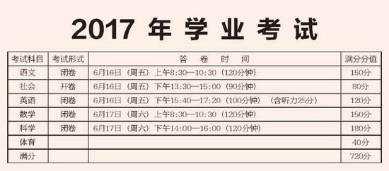 2017年浙江余姚中考考试时间及科目安排公布