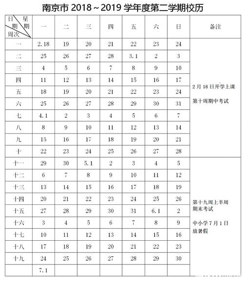 江苏省南京市2018-2019学年中小学考试时间:2018年11月-2019年6月
