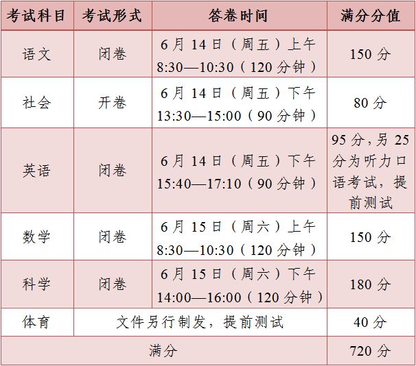 浙江省宁波市2019年中考时间及科目安排:6月14日-15日