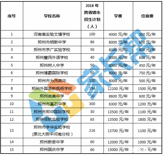 2018年郑州市民办中学跨省辖市招生计划(费用以物价局最终确定为准)