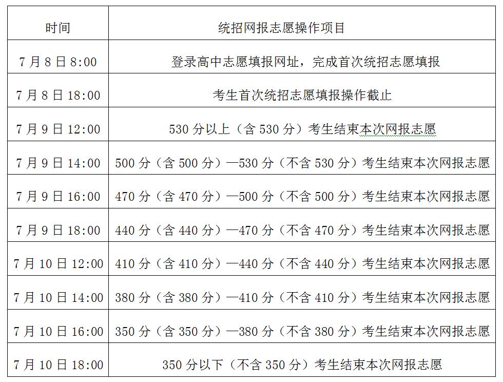 (四)本次网报志愿与动态录取具体分段安排如下: