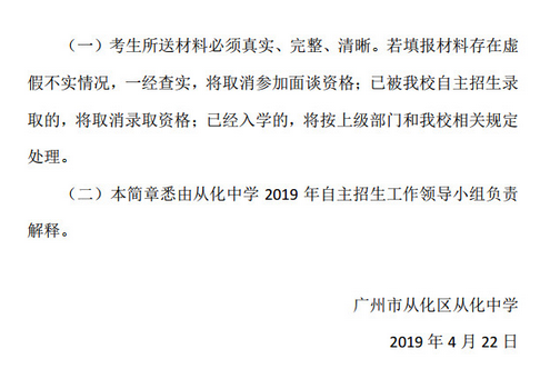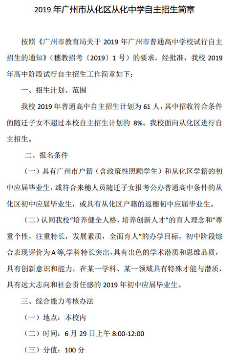 2019广州市从化中学中考自主招生简章(从化区)_中考资讯