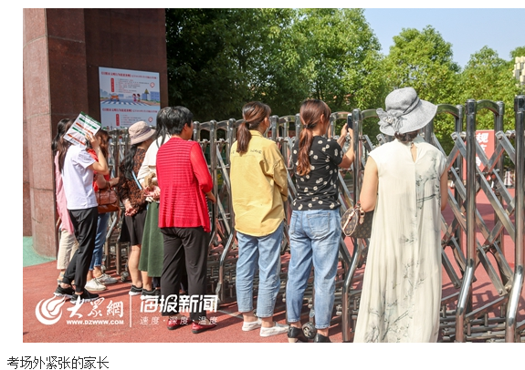 家长陪考现场为孩子鼓劲