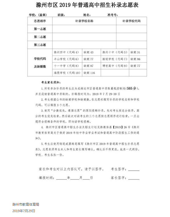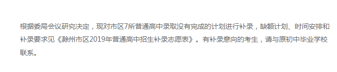 中考网整理了关于2019年安徽省滁州市中考补录通知,希望对考生有所帮助,仅供参考。