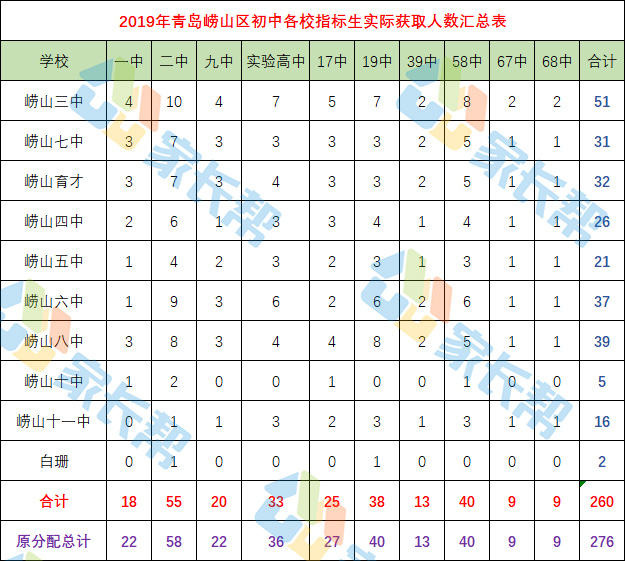 2019年青岛崂山区各学校指标生获取人数_中考资讯