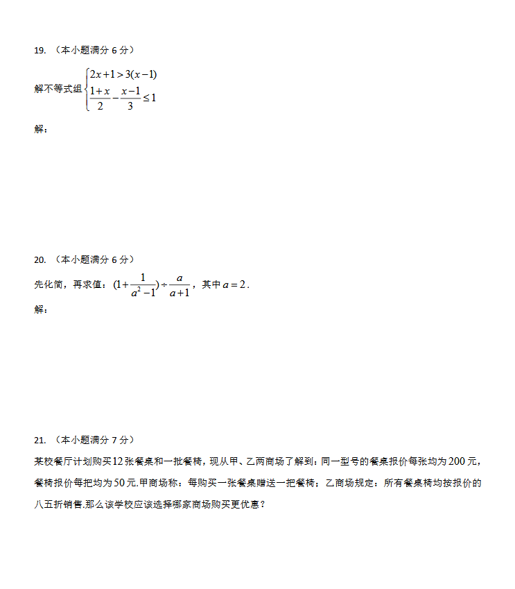 2019年青岛崂山区九年级开学数学考试卷_中招考试
